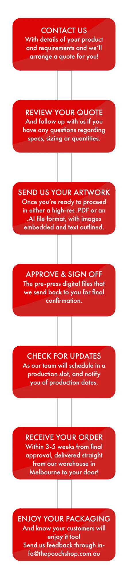 To help our customers, we provide ongoing support through the ordering process and are available to answer any enquiries that customers may have about digital printing and pouch forming.